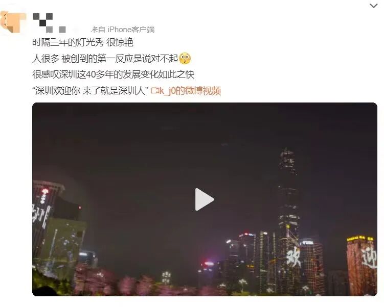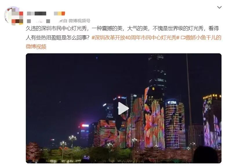 此外,很多外地朋友通过直播收看了灯光秀,在现场的市民朋友也拍摄了视频和图片,并在微博上发表感想。