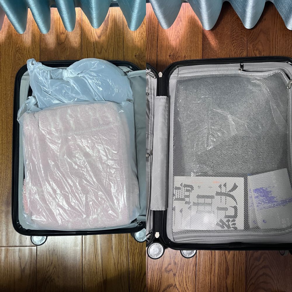 返程行李,左边为包好的睡衣。澎湃新闻记者 林子尧 摄