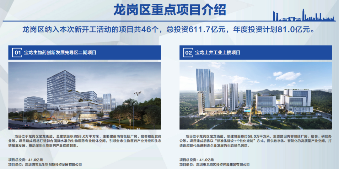 加码生物医药产业布局。位于龙岗区的宝龙生物药创新发展先导区二期项目,总投资41亿元,建成后将打造符合国际水准的生物医药专业载体空间,引领深圳生物医药产业升级和生态链聚集发展,推动深圳生物医药产业换道超车。