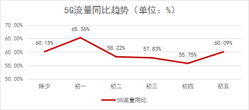 中国联通数据显示,春节假期,全国5G日均流量同比提升60%左右。5G流量的大幅增加,反映出5G正在加速融入百姓的日常生活,成为拉动新型信息消费的重要方式之一。