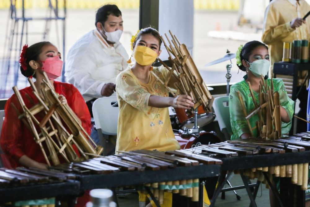 1月24日,在菲律宾马尼拉国际机场,当地艺人进行特色民乐表演。新华社发(乌马利摄)