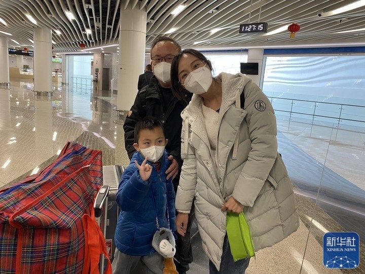 1月29日,金门乡亲李汉强和妻子、孩子准备经“小三通”回金门。新华社记者 许雪毅 摄