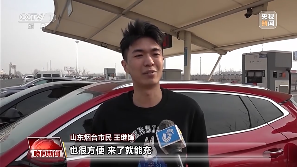山东烟台市民 王继锋:充电很快,不用一个小时就能充满,也很方便,来了就能充。