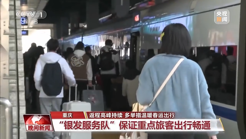 随着外出务工流、探亲流和旅游返程客流的叠加,重庆火车站的返程客流持续高位运行。目前已加开列车40对,主要开往北京、上海、广州、遵义等方向。此外,车站加强客流引导,成立了“银发服务队”,保证重点旅客出行畅通和安全。
