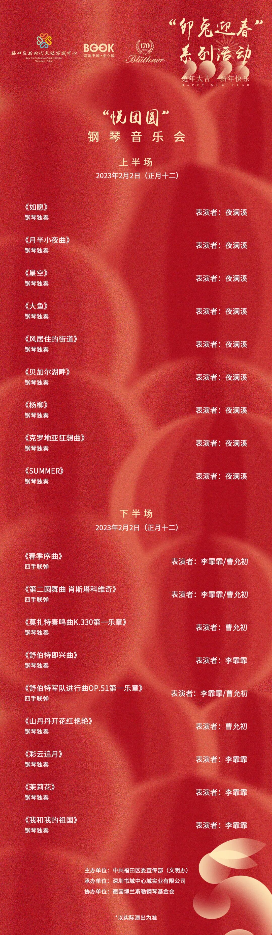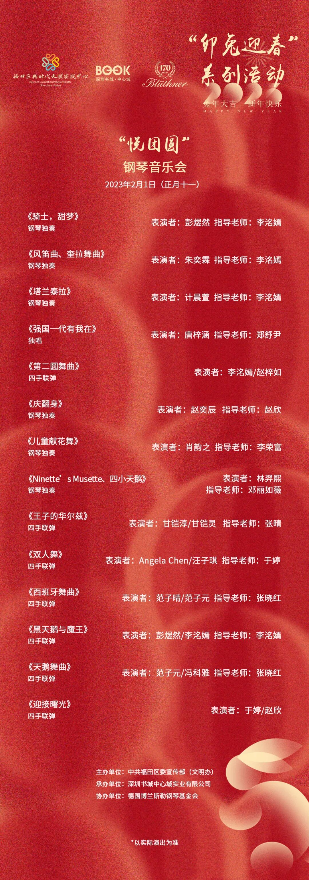 福田区新时代文明实践中心联动德国博兰斯勒钢琴基金会,共同开启“悦团圆”钢琴音乐会,与大小音乐家们一起走进音乐世界,于元宵佳节共度5日音乐盛宴。快来一起沉浸温暖时光,倾听音符带来的温馨祝福吧!