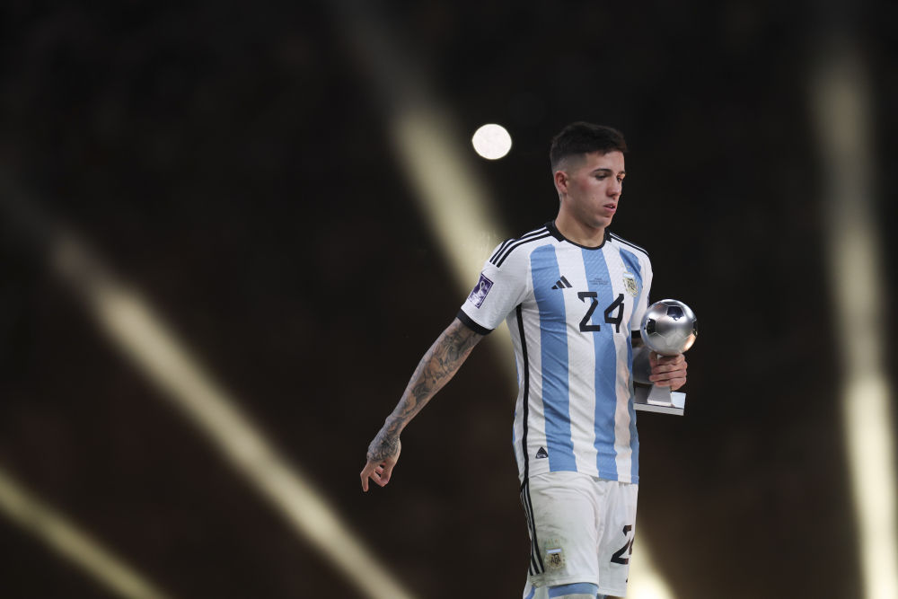 获得卡塔尔世界杯最佳新秀奖的阿根廷队球员恩佐·费尔南德斯在颁奖仪式上。新华社记者 李明 摄
