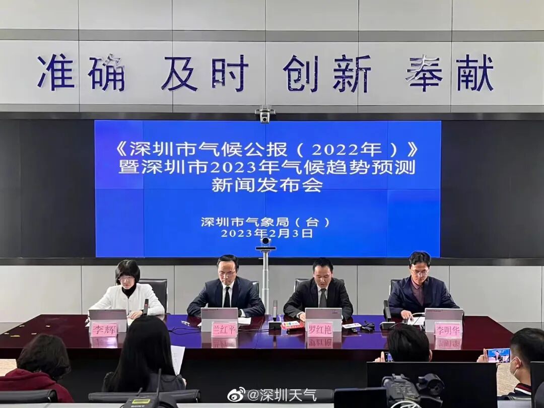 2023年2月3日,深圳市气象局召开新闻发布会,正式发布《深圳市气候公报(2022年)》,对2022年全市(含深汕特别合作区)气象监测信息进行综合分析评估,评选出深圳十大天气气候事件,并对2023年全市气候趋势进行展望。