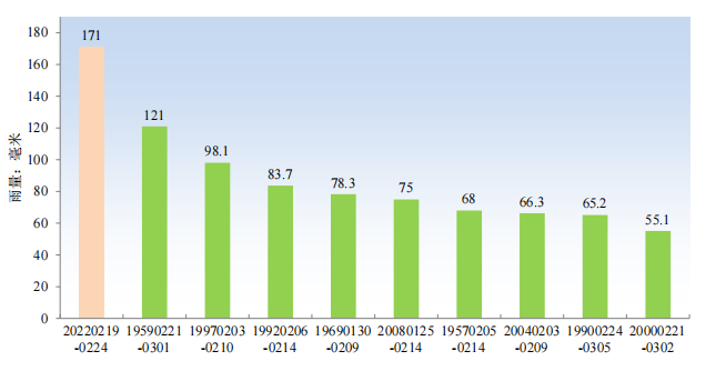2月19-24日记录到2018年之后首个低温阴雨过程,过程雨量刷新深圳低温阴雨过程纪录,并导致深圳于2月20日入冬,为历史第二晚(最晚2月28日,1986年),冬季仅持续5天。