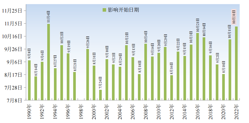 △1990年以来逐年台风最晚影响深圳日期示意图