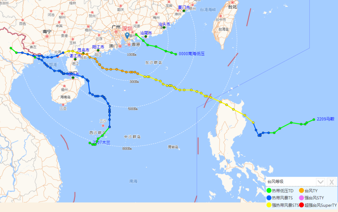 南海热带低压为年内对深圳降雨影响最重的台风,以及2008年以来对深圳降雨影响最重的热带低压,全市平均累计雨量152.5毫米;台风“木兰”给深圳带来暴雨到大暴雨,全市平均累计雨量132.9毫米;台风“马鞍”是年内进入深圳300公里范围的最强台风,带来最大阵风34.1 米/秒(12级,大鹏新区南澳办事处)。