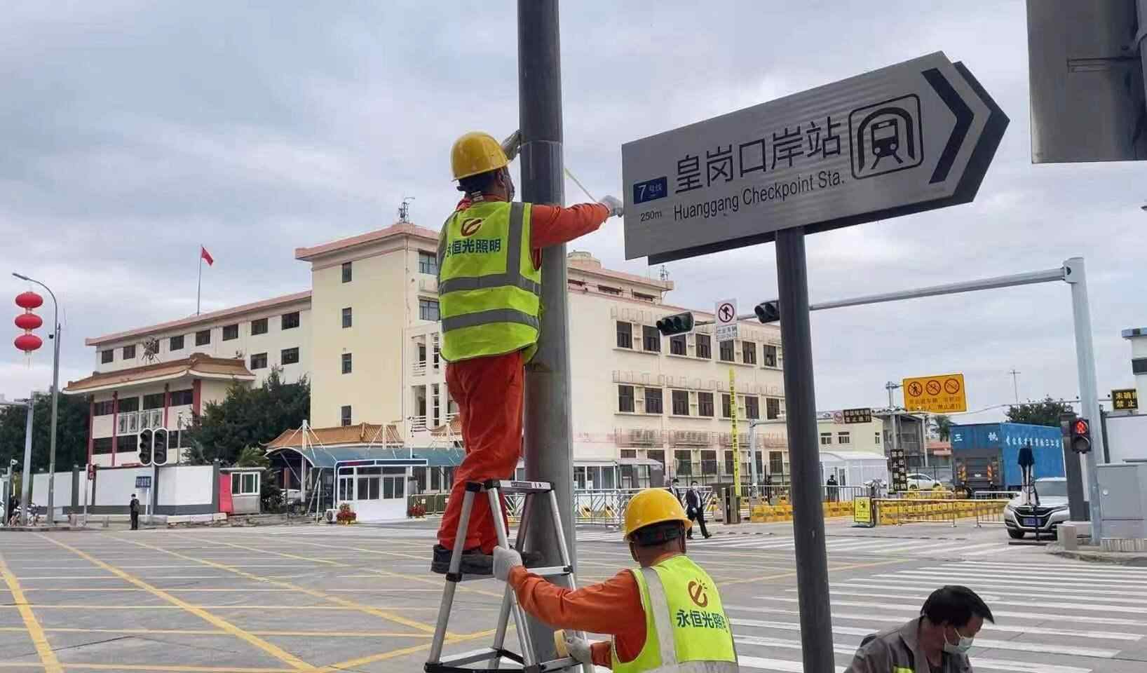 记者在现场看到,通往出入境口岸旅检区的天桥入口已布置好引导排队用的铁护栏,市政工人正在加紧对路标路标等设施更新完善。