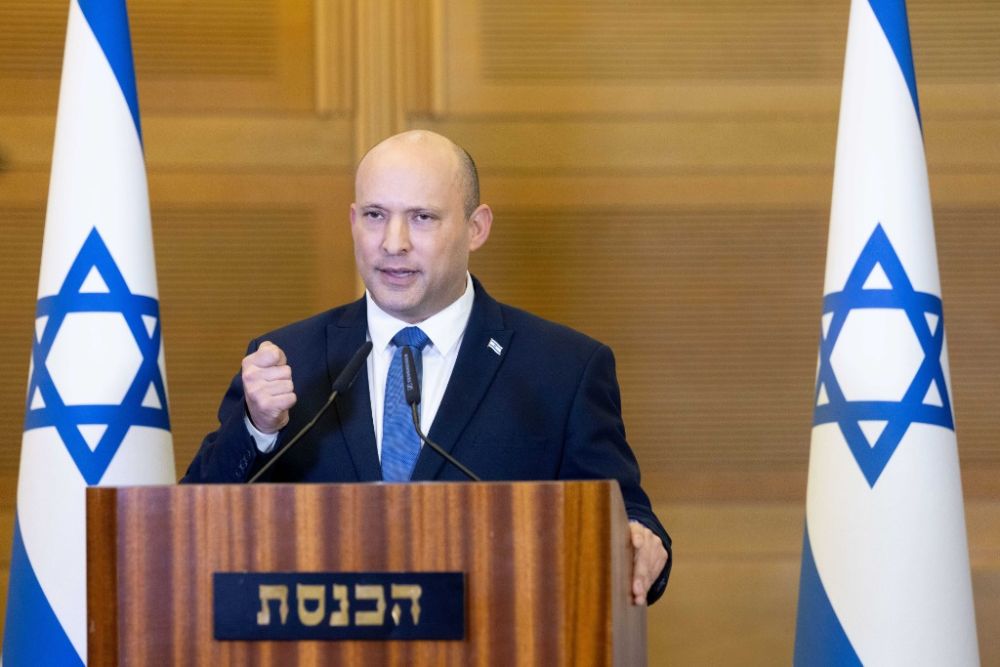 2022年6月29日,在位于耶路撒冷的以色列议会,时任以色列总理贝内特出席新闻发布会。新华社/基尼图片社