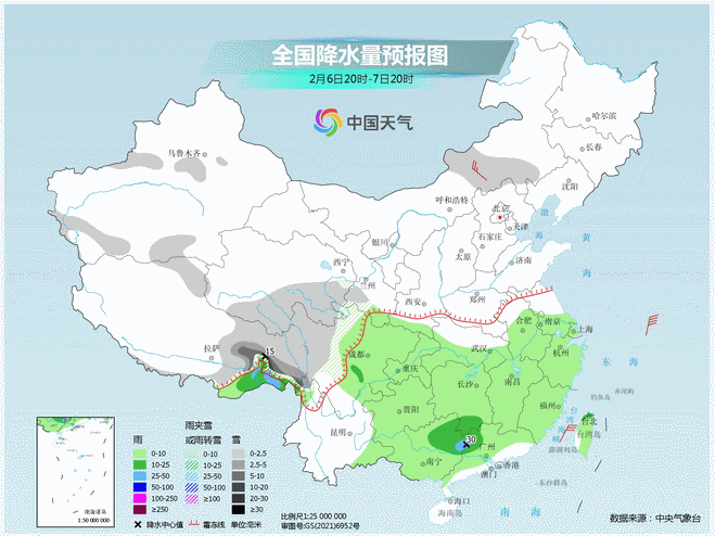 2. 雨雪分界线最南到哪里?