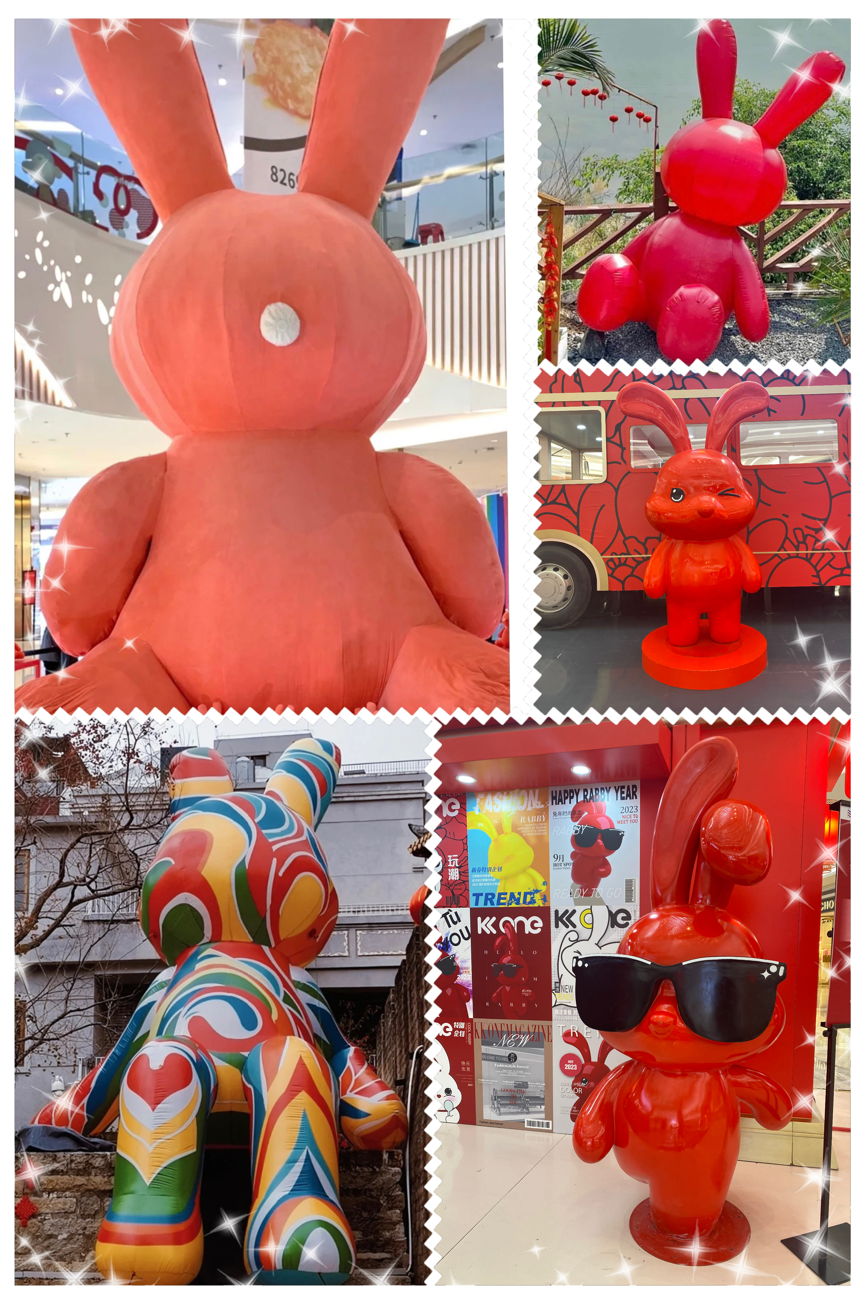 除了以上这些喜气洋洋的“巨型萌兔”,在景区、商圈也不乏萌兔的身影,它们就像吉祥的化身,给人们相信美好未来的力量。