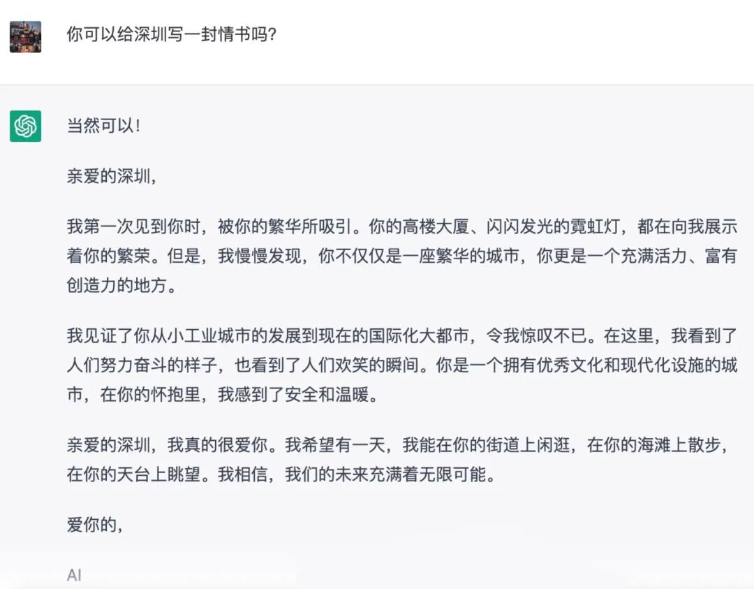 (原标题《一封写给深圳的情书,来自ChatGPT……》)