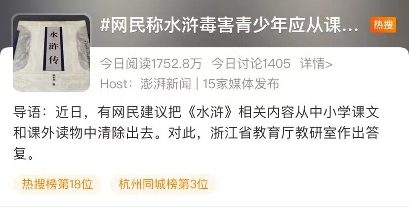 (原标题《〈水浒〉毒害青少年?应从课文中清除?教育部门回应→》)