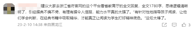 浙江省教育厅教研室在回复中表示,阅读可以丰富思想、增长才干,促进人的思想观念的现代化,但如果阅读仅仅读了文字却无思考,那么阅读就没有任何意义。