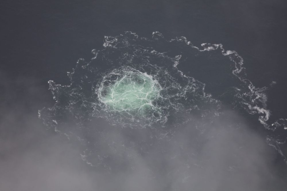 这张瑞典海岸警卫队2022年9月28日发布的航拍照片显示的是“北溪”天然气管道第四个泄漏点,该泄漏点位于瑞典附近水域的“北溪-2”天然气管道上。新华社发(瑞典海岸警卫队供图)