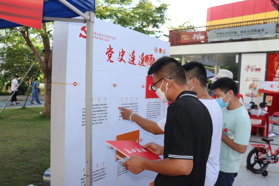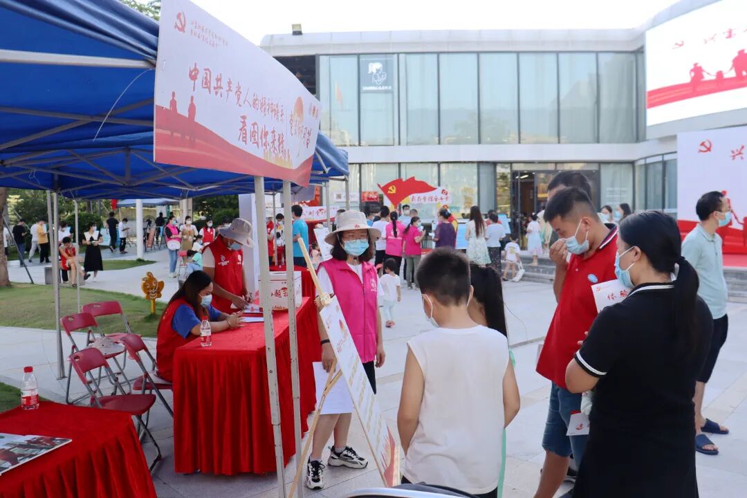 8月21日下午,兴富社区党委在辖区奋斗者广场开展兴富社区百里长廊“说”党史暨社区“美好生活节”活动,现场吸引了500余名青工、居民、儿童参加,现场观看党史事迹、党史代表人物展、体验党史连连看、党史知识问答、并参与“我与党旗合个影”打卡,一批沉浸式的党史学习体验活动带大家重温百年党史,抚触血脉里的信仰柔光。