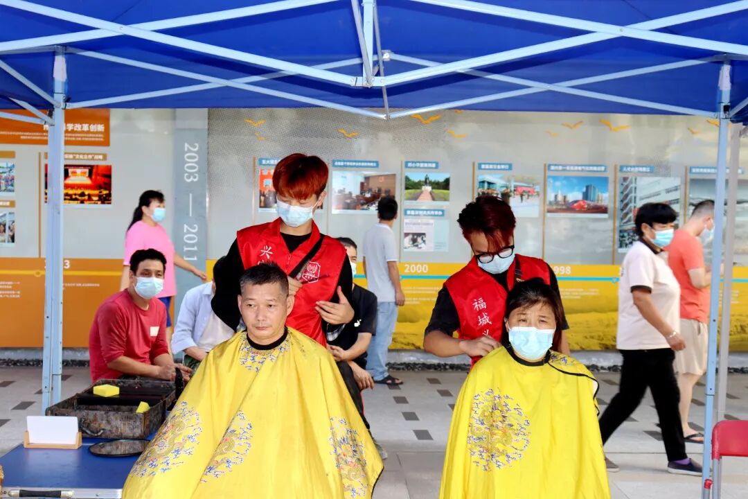 义剪摊位,来自社康的白衣天使们,以及爱心理发师们,主动在现场支起摊位免费为居民服务。一次次细致入微的服务,居民们露出满意的微笑,一份微笑是一份幸福,无数的幸福汇聚在一起,就是美好明天!