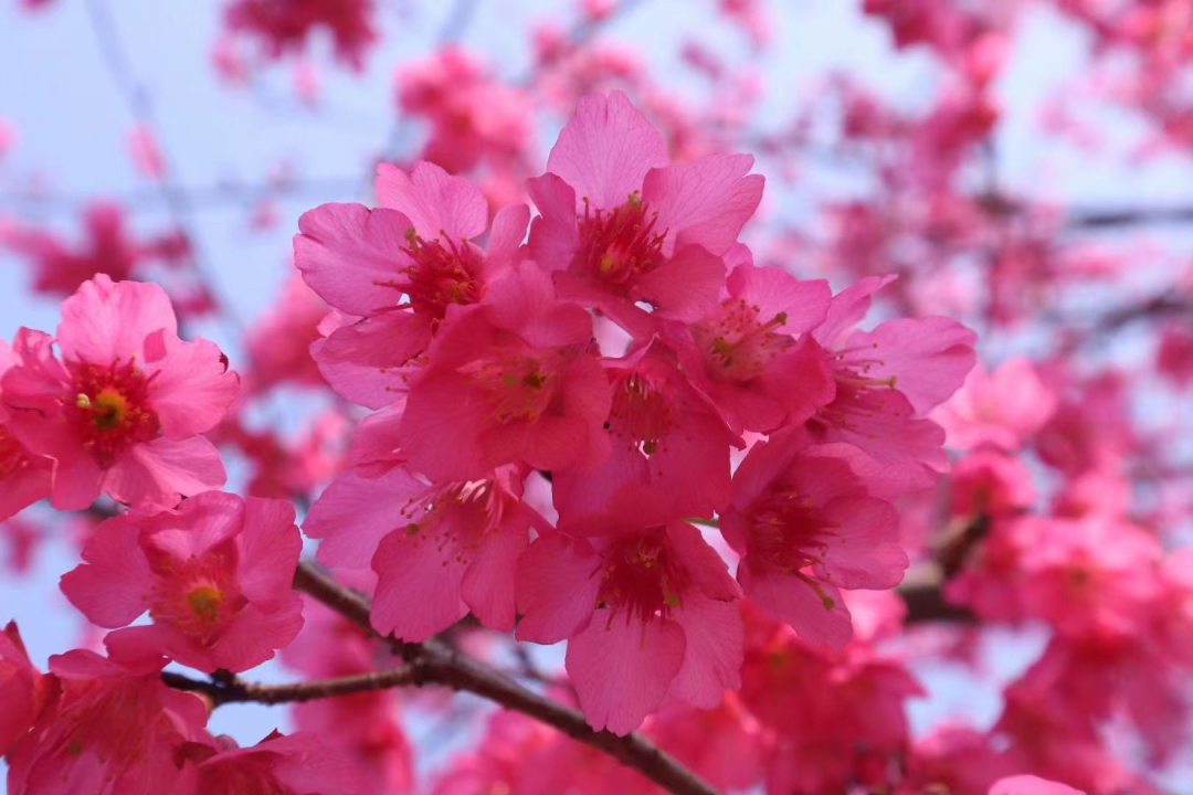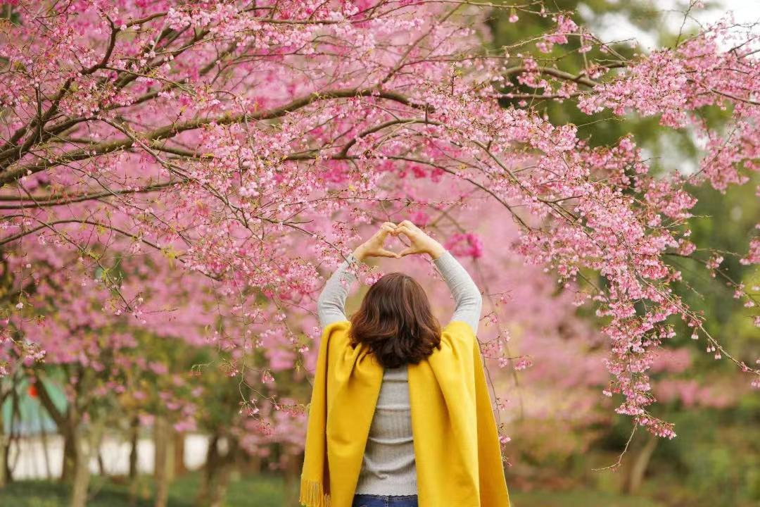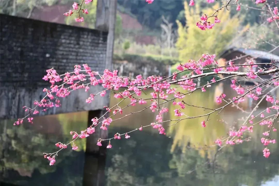 伴随着满园动人的客家山歌,五龙客家风情园的山樱花摇曳生姿,绽放出迷人的姿态。