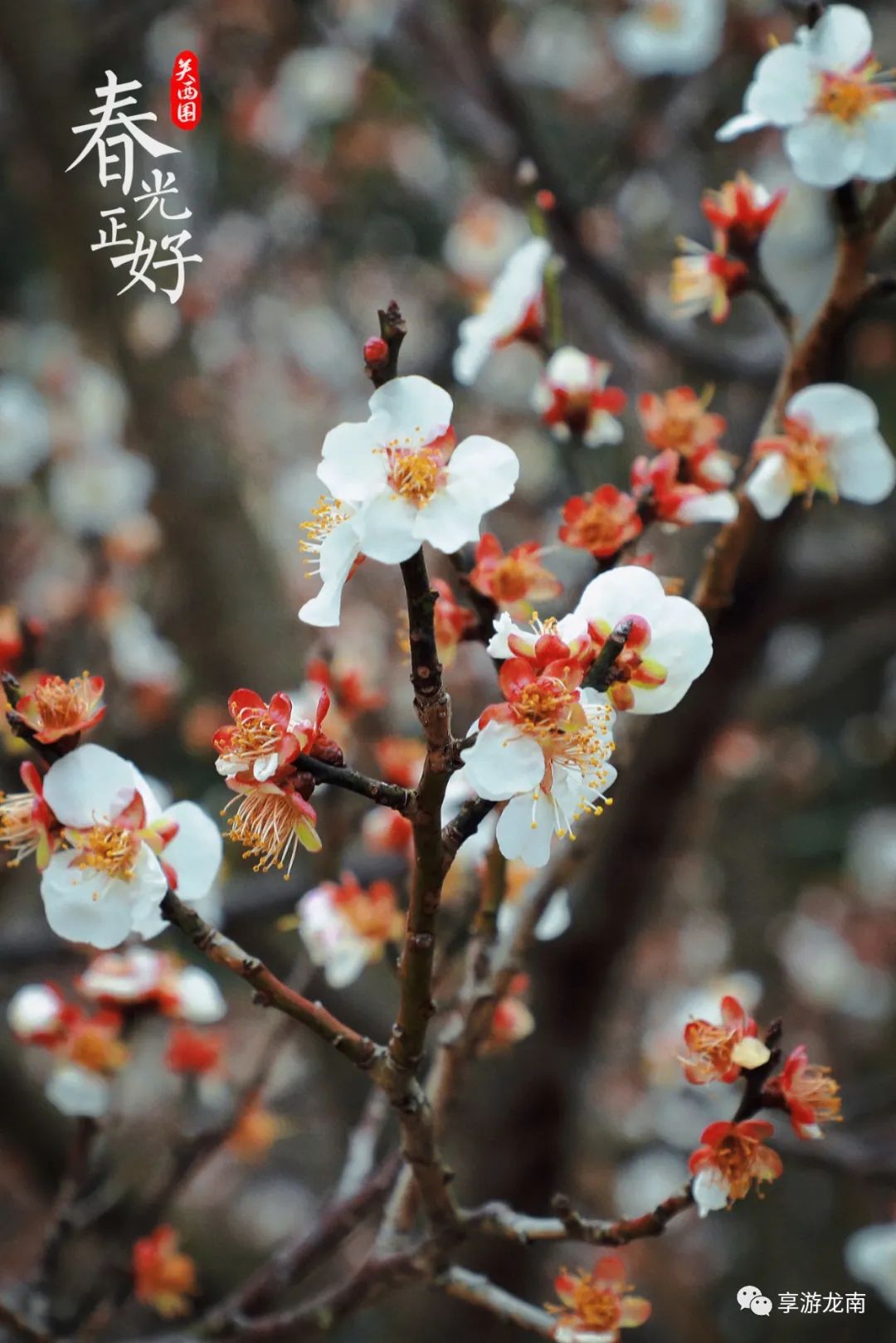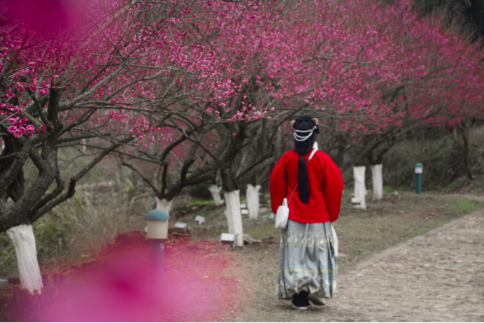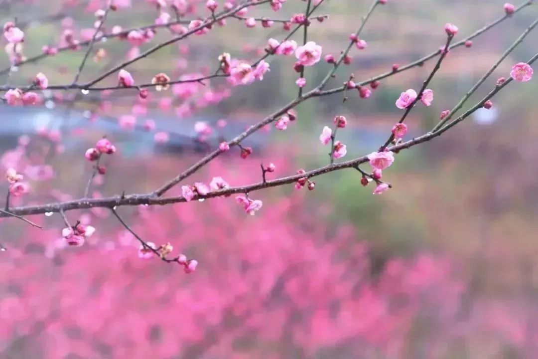 千年古驿道,梅花次第开,红梅娇艳,白梅清绝,一道双梅争艳的美丽风景形成了一抹靓丽的色彩。