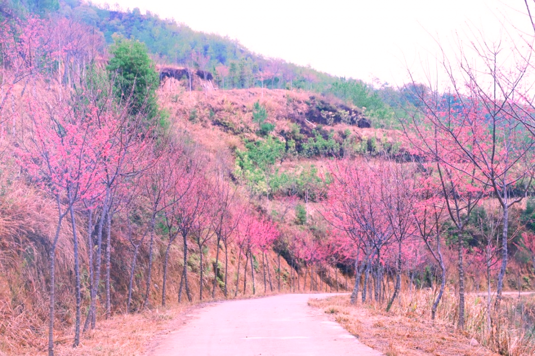 南康麻双樱花谷,樱花盛开,风姿绰约,云霞明漫,漫步在樱花大道上,如同走进浪漫美丽的童话世界。