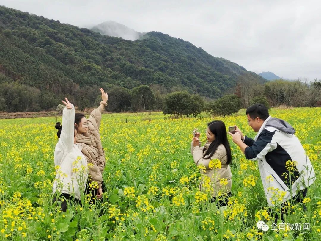 全南龙下乡川垇村的300多亩油菜花竞相绽放,连片的油菜花开满田野,不少游客“闻”香而来,赏花踏青,感受春日气息。