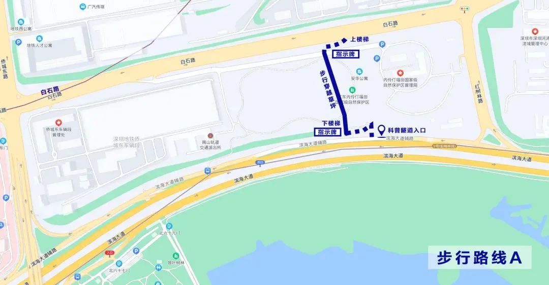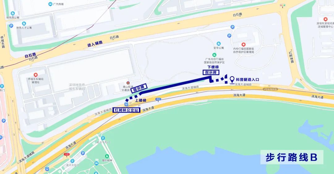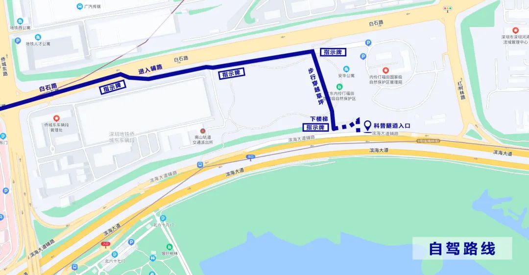 导航至广东内伶仃福田国家级自然保护区管理局,从白石路进入辅路。