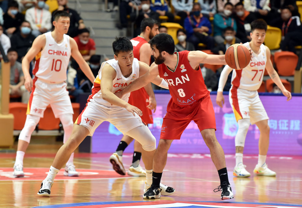 2月26日,中国队球员赵睿(左)在比赛中防守伊朗队球员雅克查理。新华社记者 卢炳辉 摄