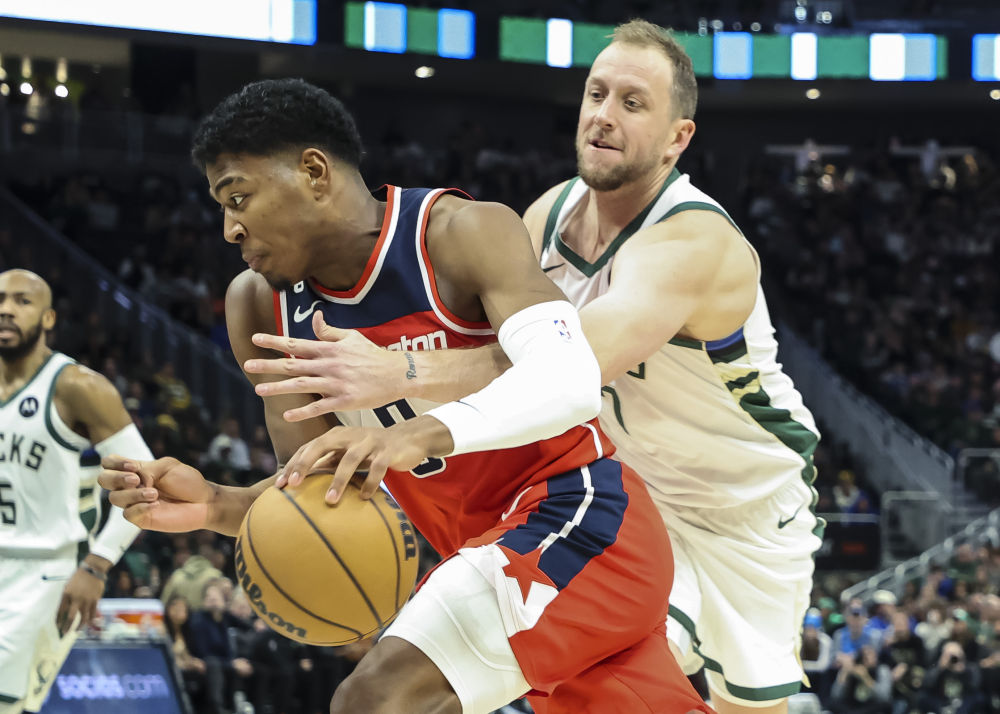 1月1日,代表华盛顿奇才队的日本球员八村塁(中)在比赛中突破。新华社发(乔尔·莱纳摄)