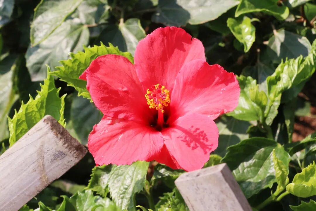 朱槿——朱槿又名扶桑,由于花色大多为红色,所以中国岭南一带将之俗称为大红花。常绿灌木,花大色艳,玫瑰红色、淡红、淡黄等色,四季常开,主供园林观用。