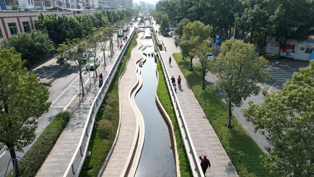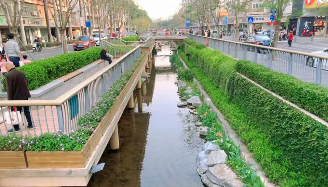 如今,这里暗渠复明,河道内部设置亲水步道,堤顶设置人行步道、亭廊座椅,将治水、治城、治产相融合,通过河道拓宽、湿地净化、管线迁改、景观营造、绿化提升、交通改善等措施,一体化解决木墩河暗渠段隐患,释清泉之流,还绿水于民。