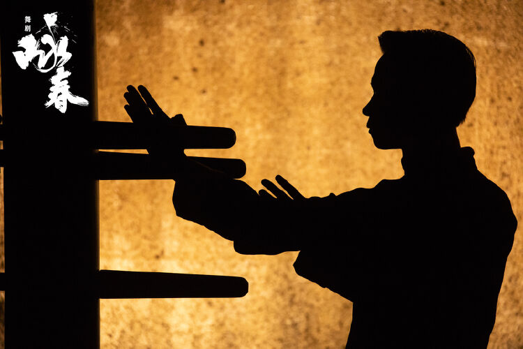 舞剧《咏春》讲述的是一个发生在电影拍摄片场的故事:“戏外”,深圳《咏春》剧组在拍摄叶问的故事;“戏内”,叶问赴香港打拼,只为开咏春的一扇门。舞剧中,两条线索并行展现、无缝切换,两个场景在舞台上旋转交替。《咏春》以叶问为精神核心,同时也讲述了电影片场的造梦人追逐光、靠近光,去雕刻、塑造英雄的身影。