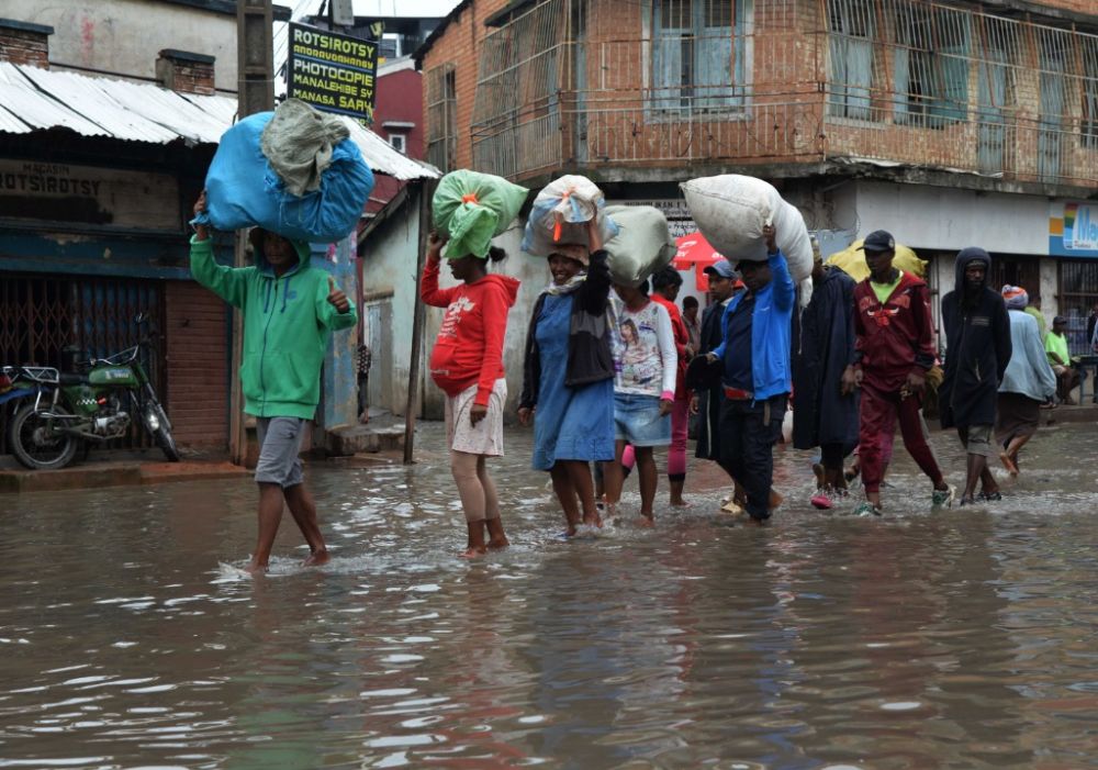 1月25日,在马达加斯加首都塔那那利佛,行人走过积水的道路。新华社发(西塔卡·拉乔纳里松摄)