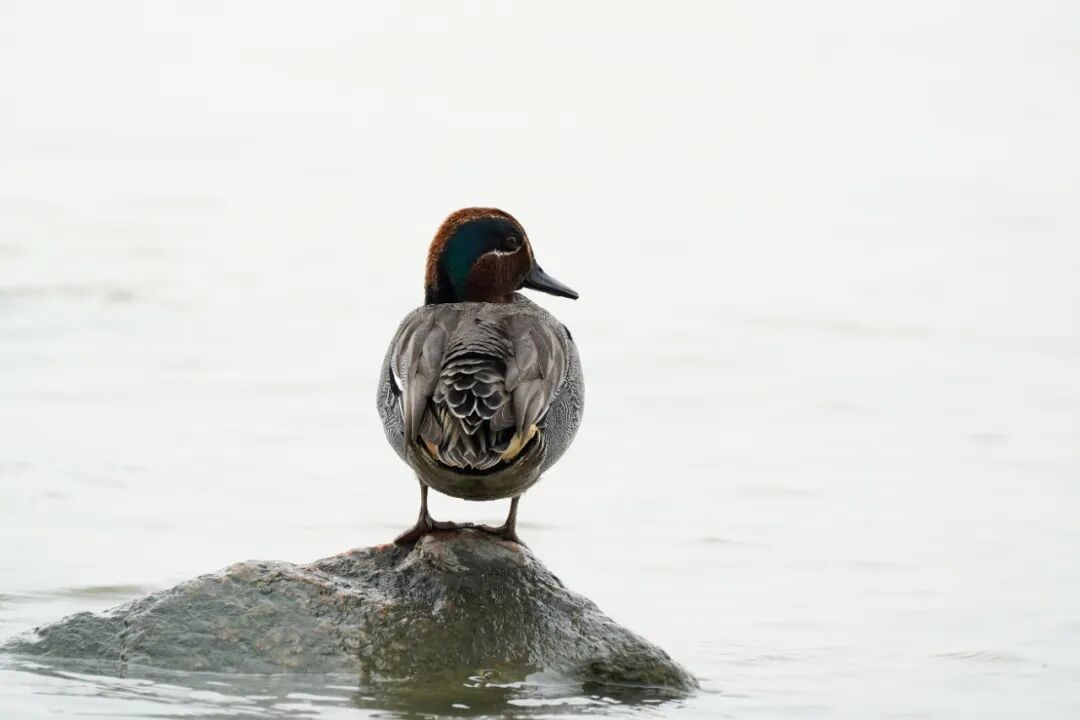 A male Eurasian teal at Shenzhen Bay Park. Wang Haolan 深圳湾公园的雄性绿翅鸭。王皓岚摄
