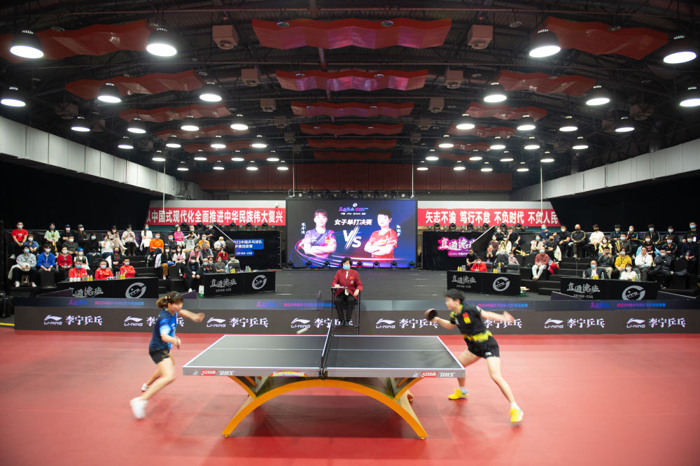 2月23日,中国乒乓球队德班世乒赛选拔赛女单决赛中,孙颖莎(右)战胜陈幸同夺冠。新华社记者 陈钟昊 摄