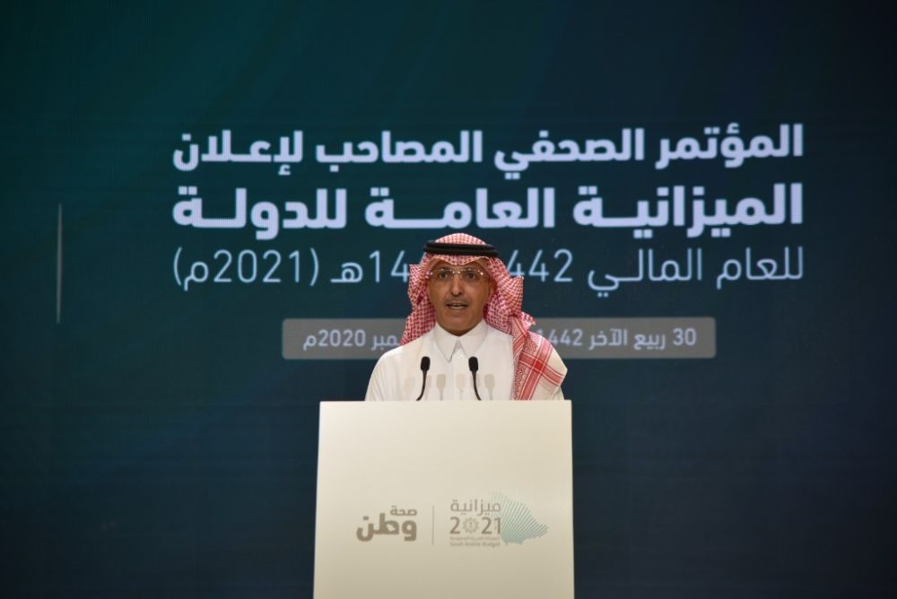 2020年12月15日,在沙特阿拉伯利雅得,沙特财政大臣穆罕默德·贾丹出席2021年财政预算案新闻发布会。新华社记者 涂一帆 摄
