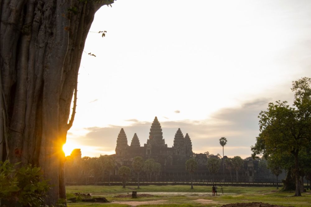 这是2021年5月21日在柬埔寨暹粒拍摄的吴哥古迹日出。新华社发(柬埔寨吴哥古迹保护和管理机构供图)