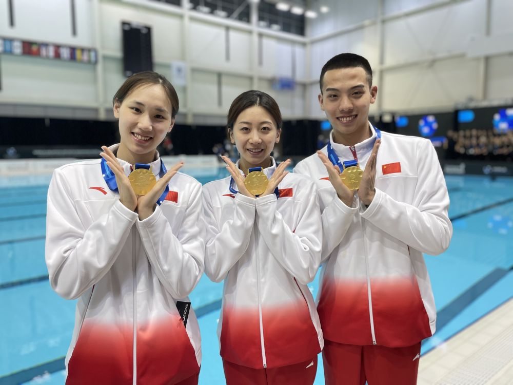 石浩玙(右一)、程文涛(中)和替补选手张依瑶。