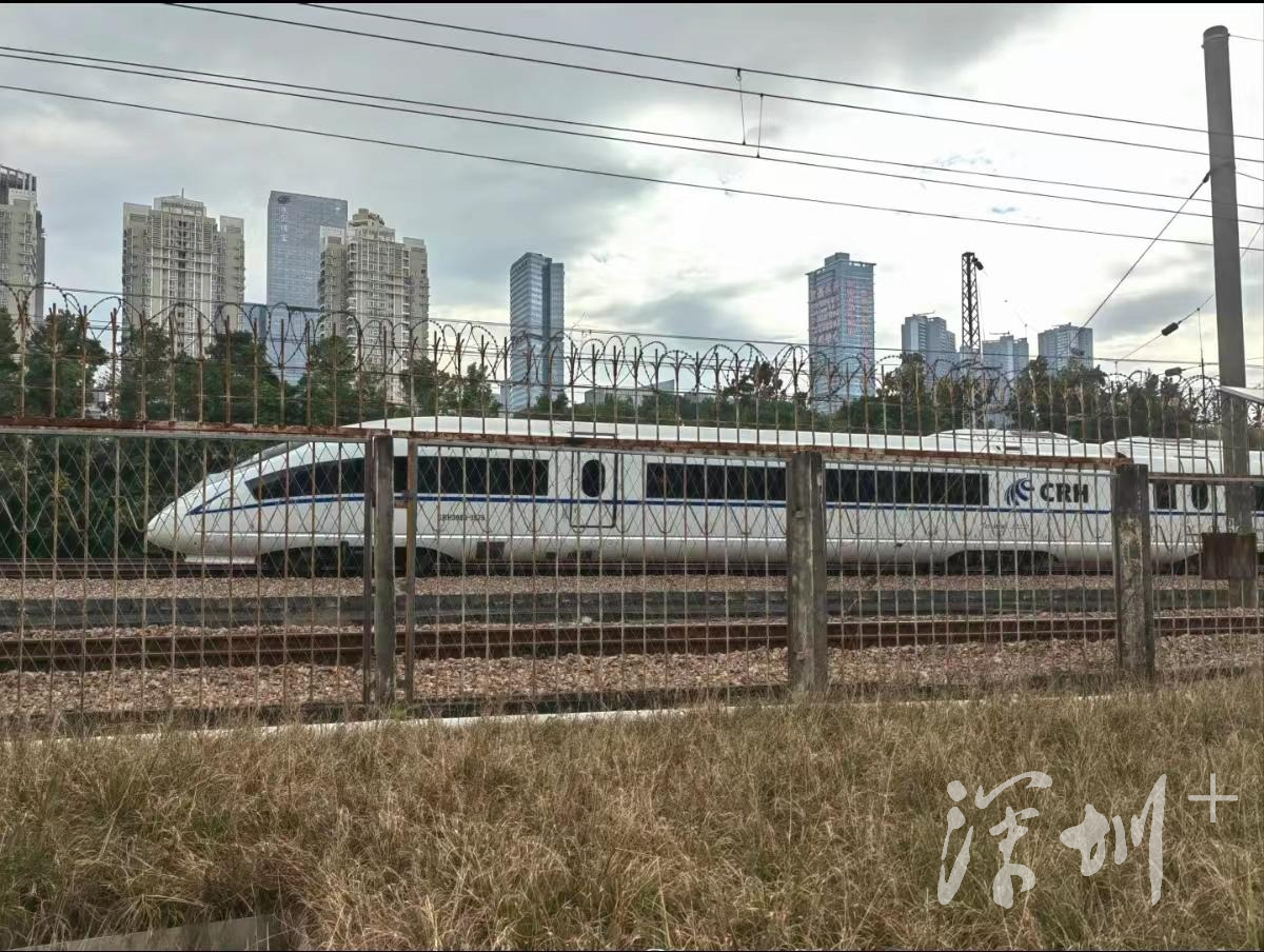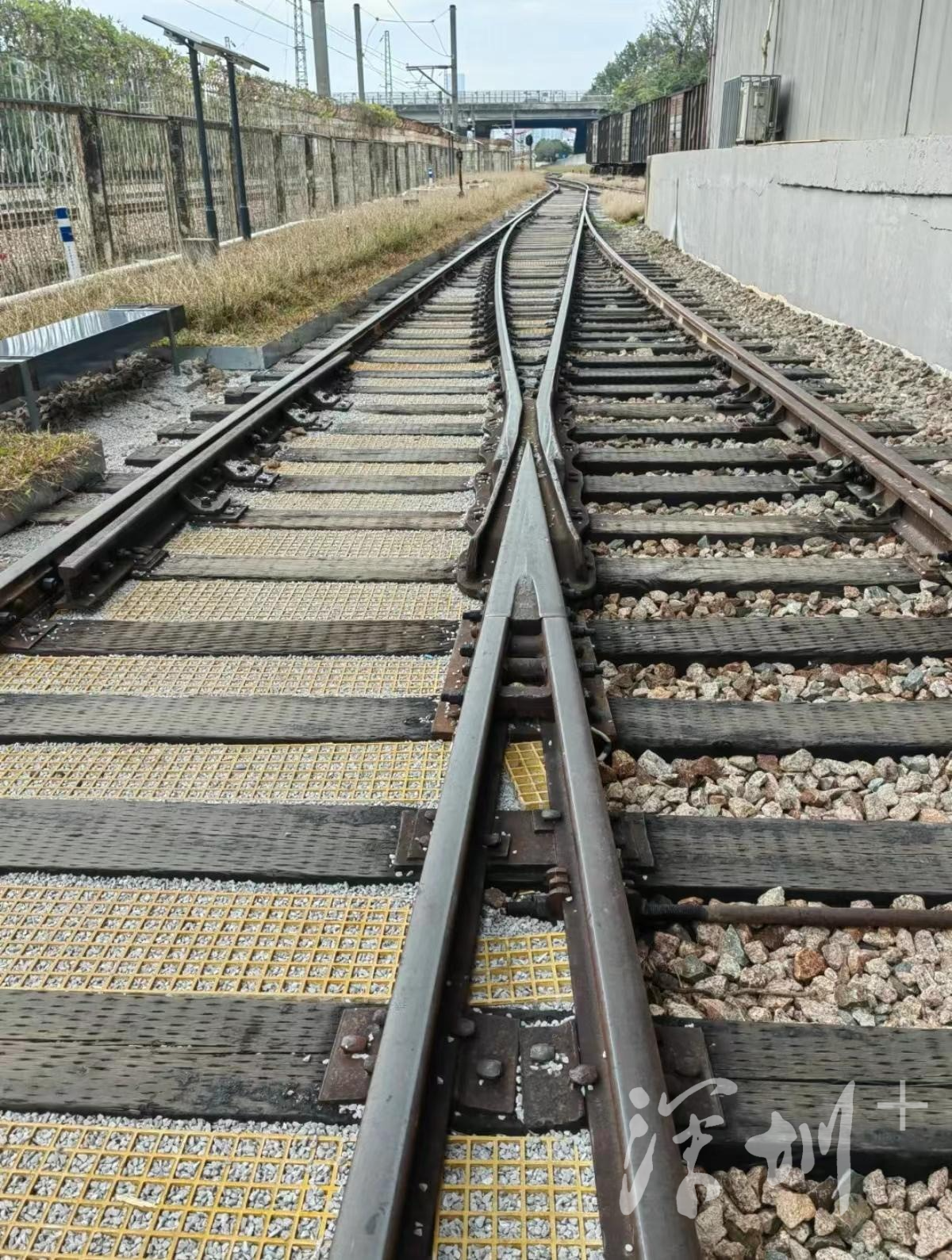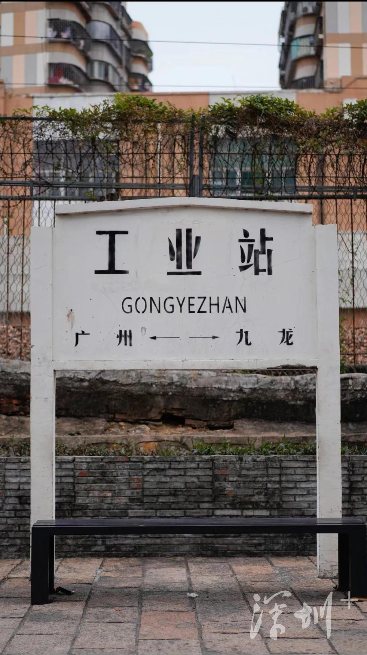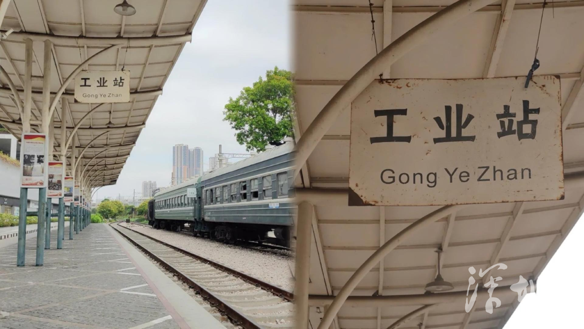 白色站牌上,“工业站”和“广州—九龙”的字迹依旧清晰。铁丝网上方,“和谐号”每隔几分钟就飞驰而过。