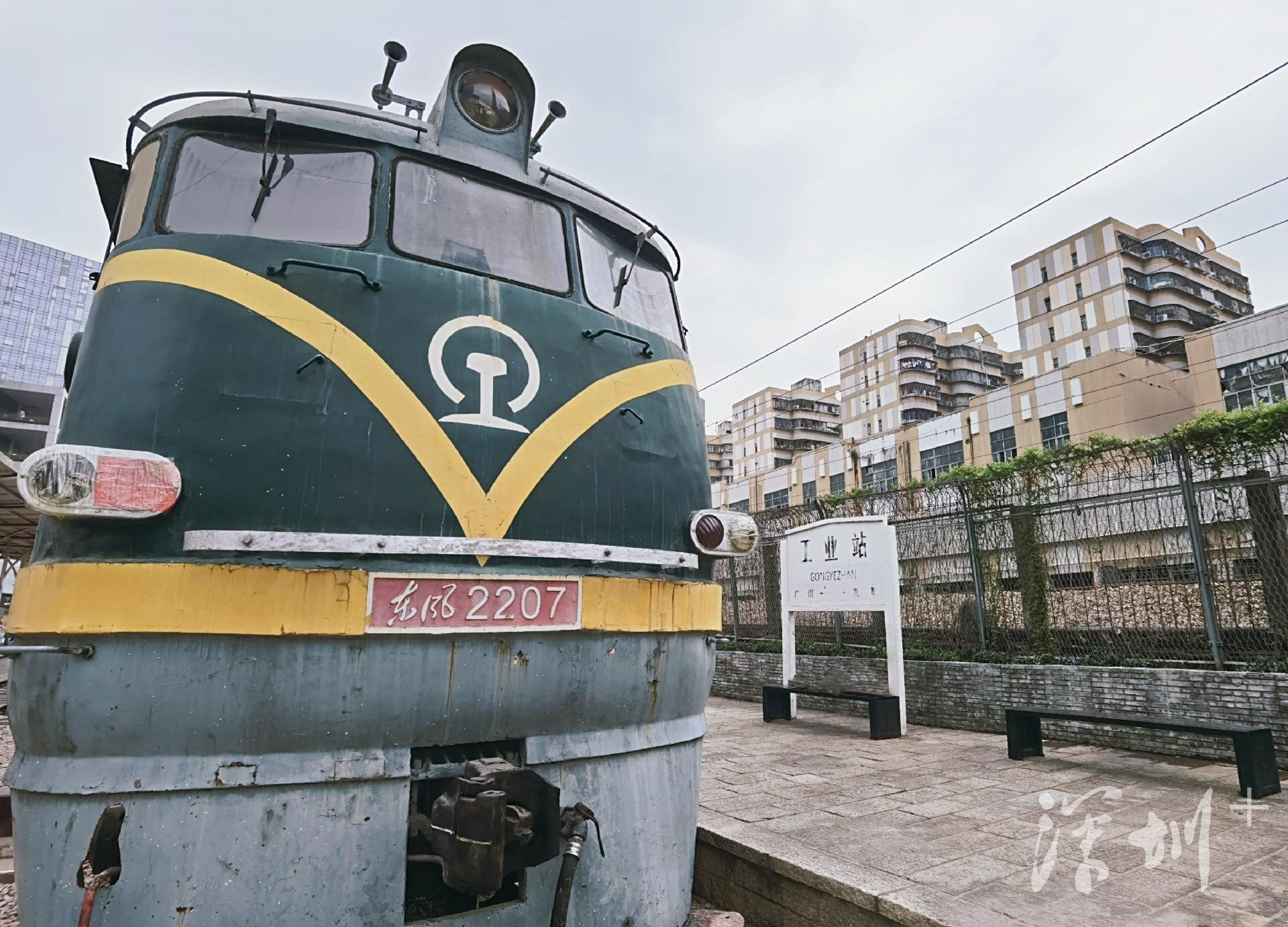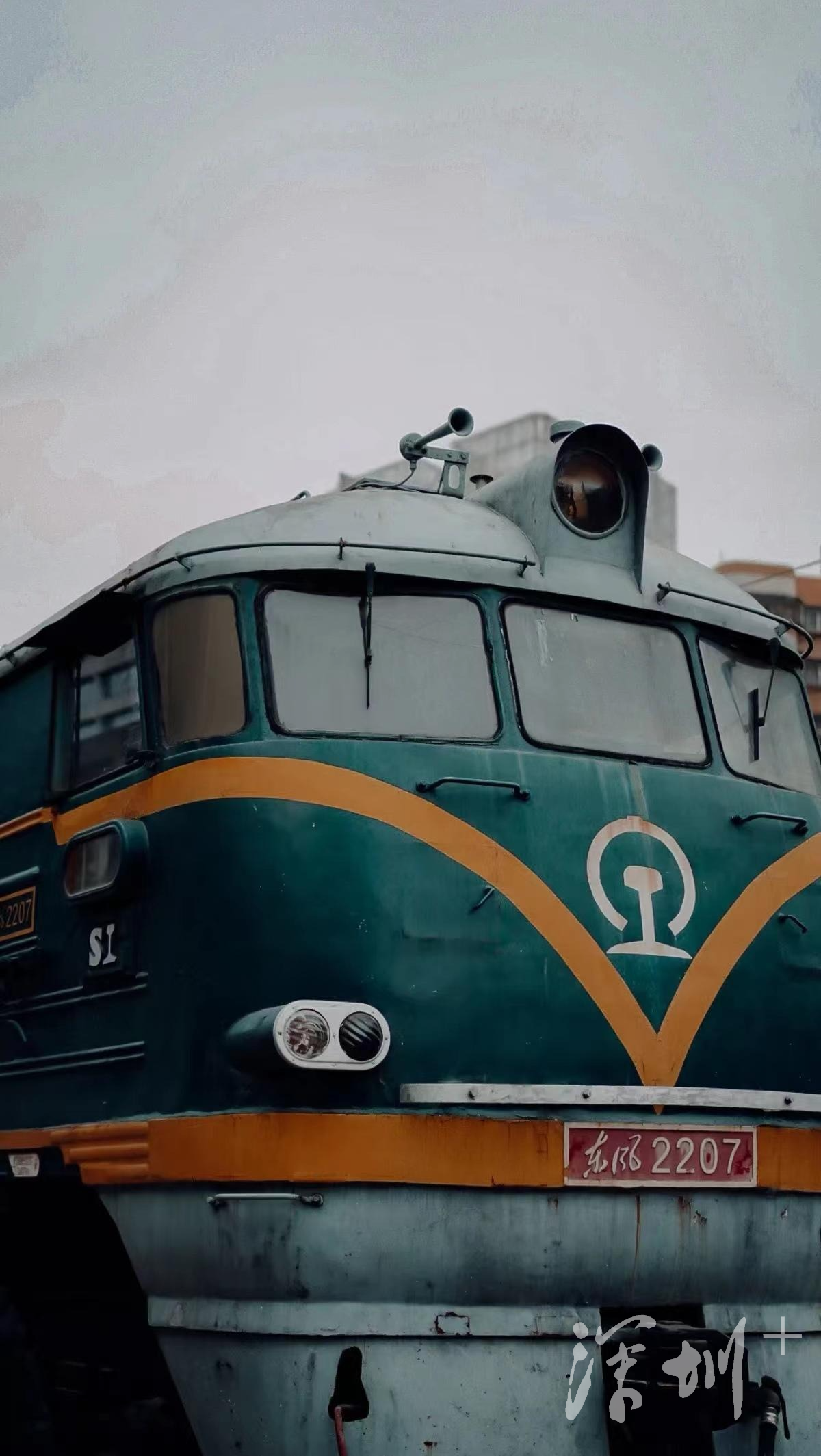 绿色的火车头上写着“东风2207”的字样,这辆车由大连机车车辆厂在1967年制造,是中国第一款定制批量生产的东风型柴油机车,也是当时广九铁路运输的主力。