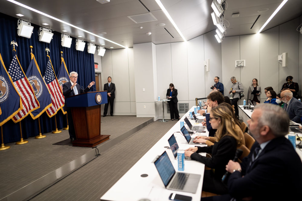 3月22日,美国联邦储备委员会主席鲍威尔在华盛顿出席新闻发布会。(新华社记者刘杰摄)