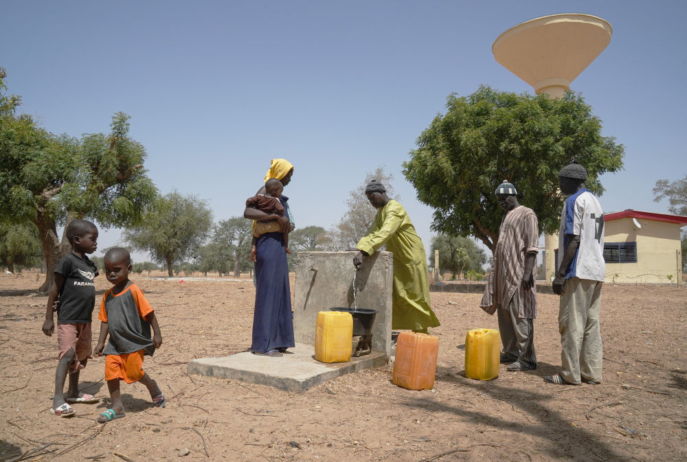 2023年3月20日,在塞内加尔久尔贝勒区的泰内富勒村,村民等待取水。新华社记者 韩旭 摄