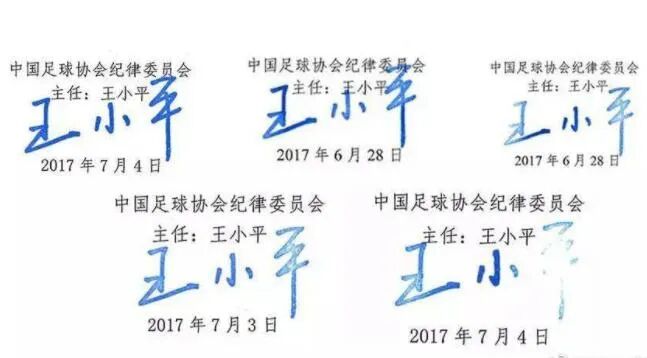 但在球迷群体中,王小平有着相当大的影响力。这主要源于作为足协纪律委员会主任,王小平的签名总能出现在联赛各类罚单之中。