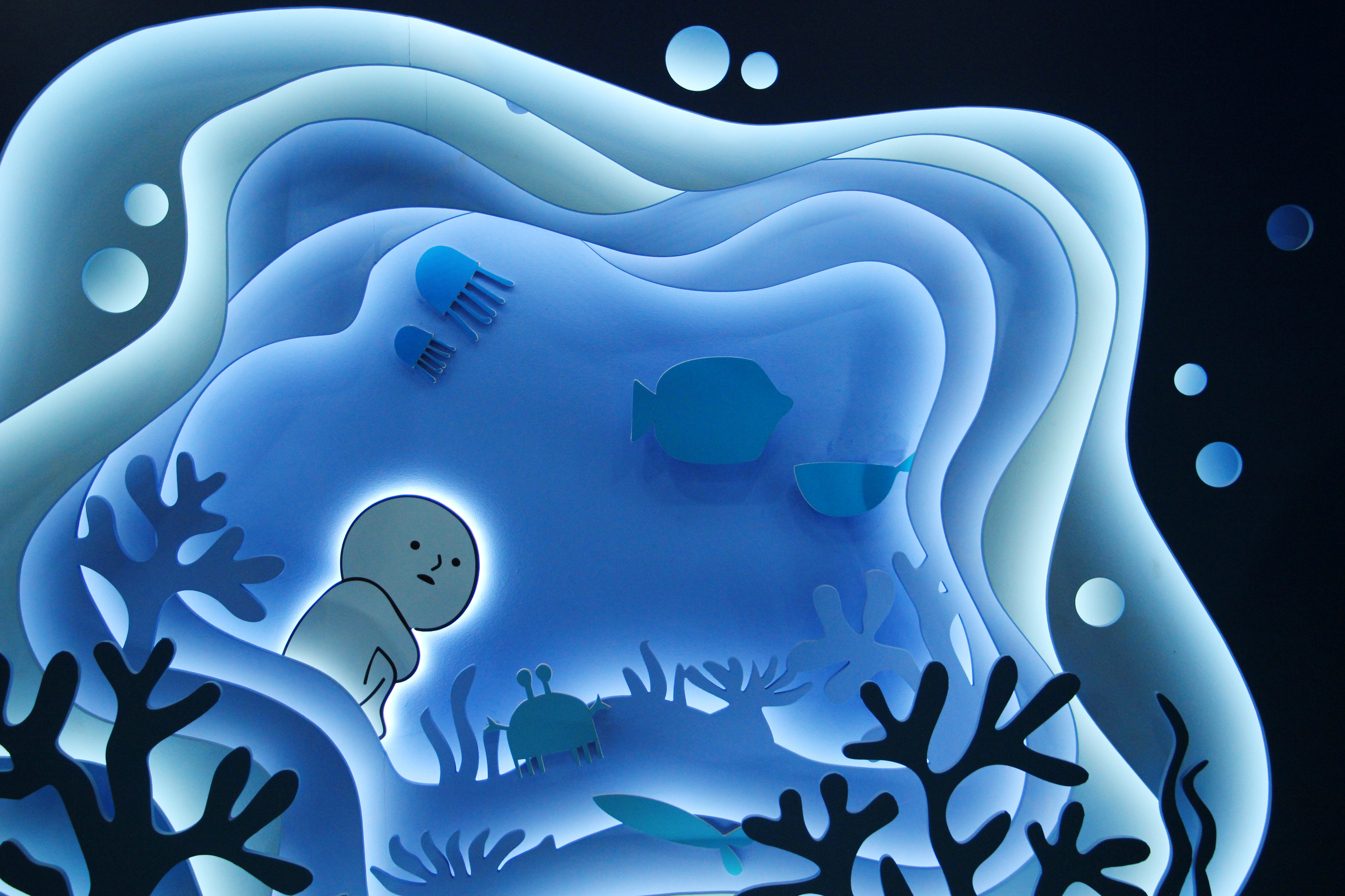 在浴缸中陷入沉思呆呆的样子,是打工人角落君最寻常的形象。思绪慢慢放空,浴缸里的水渐渐泛起波澜,水底的鱼虾开始浮现,靠在摇摆的珊瑚礁旁,在澡堂里的时间果然是下班后最舒服的时光。