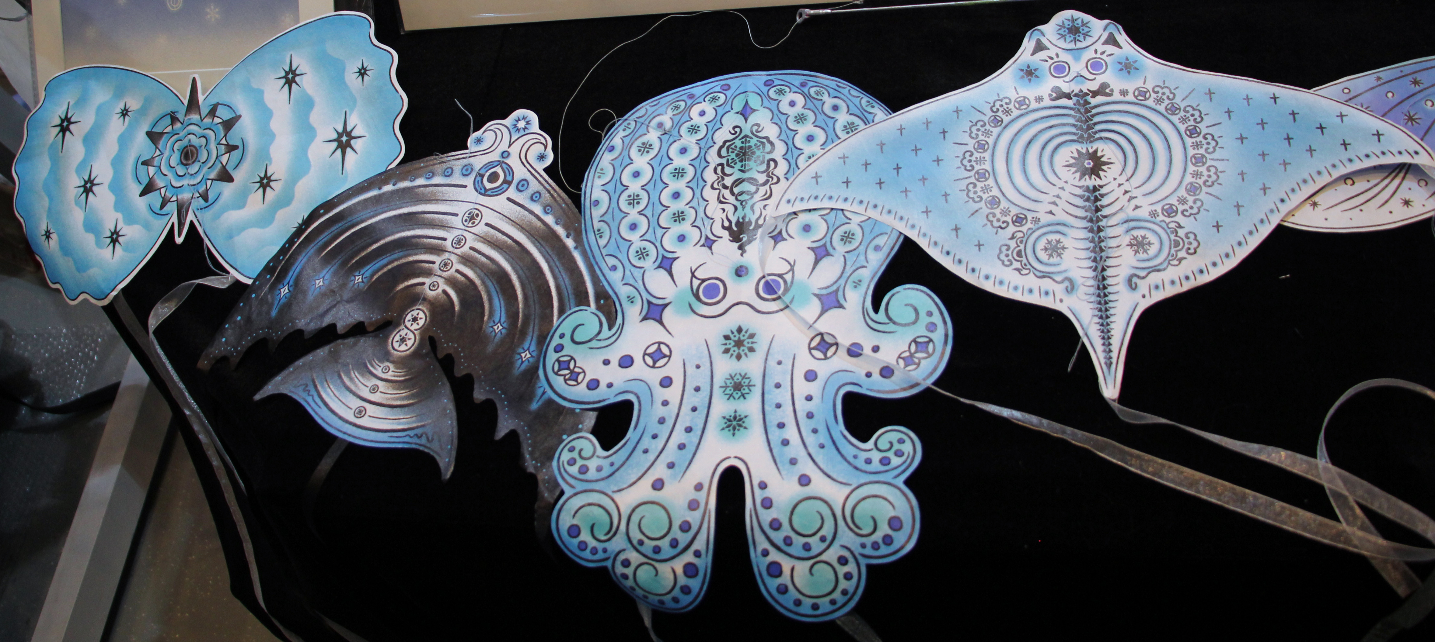 乌贼、鳐鱼、扇贝,蓝色海洋生物构成的迷你风筝你见过吗?