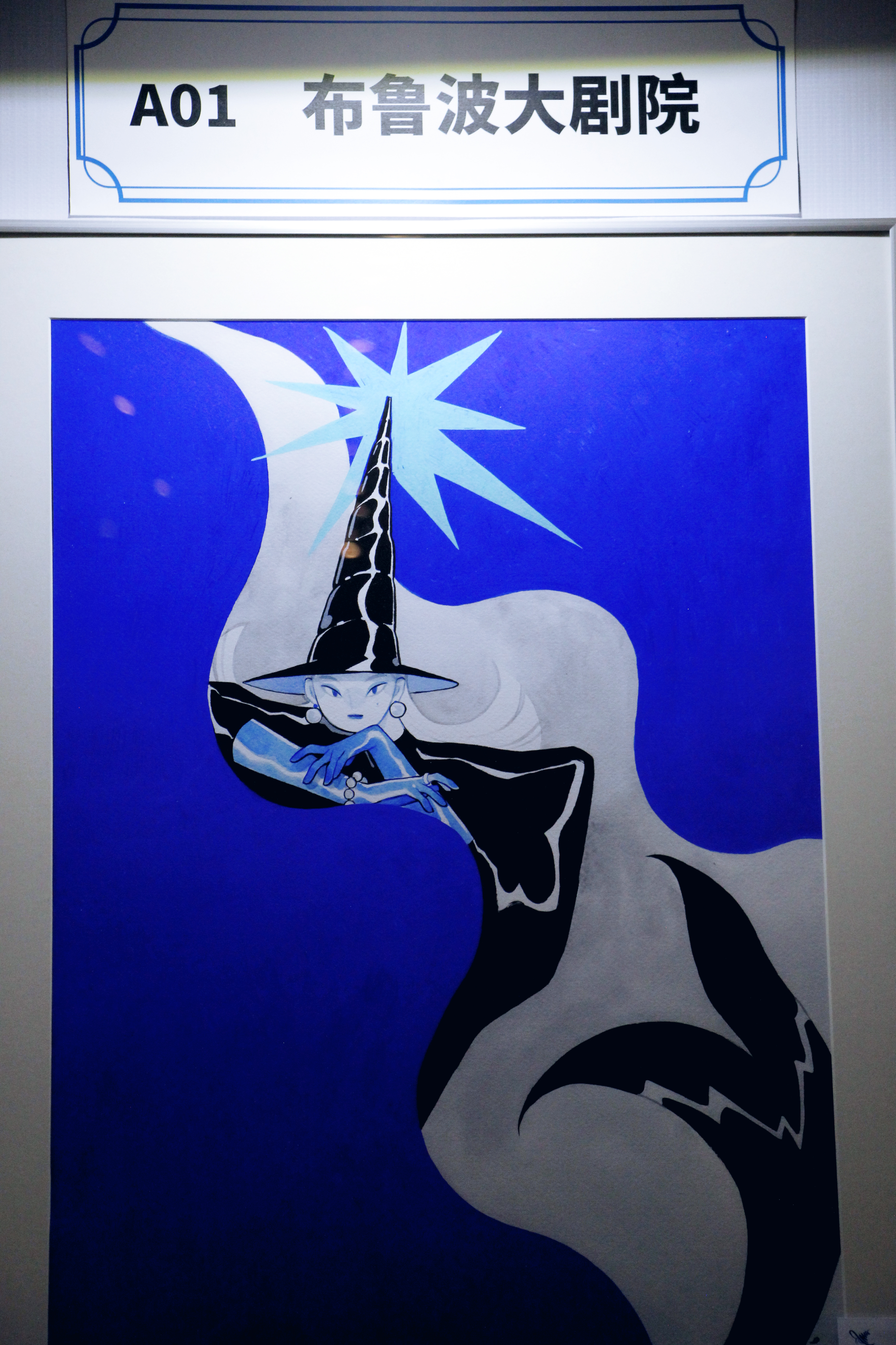 布鲁波大剧院讲述的是东方魔法师孔玲娜在这家大剧院工作期间,对相关海底世界文化的记录,以及所接触的舞蹈演员们的奇遇故事。插画家蚂蚁大胆用色,以黑与蓝的巨大色块对撞,勾勒出静谧剧院场景中小魔女俏皮而曼妙的身形。