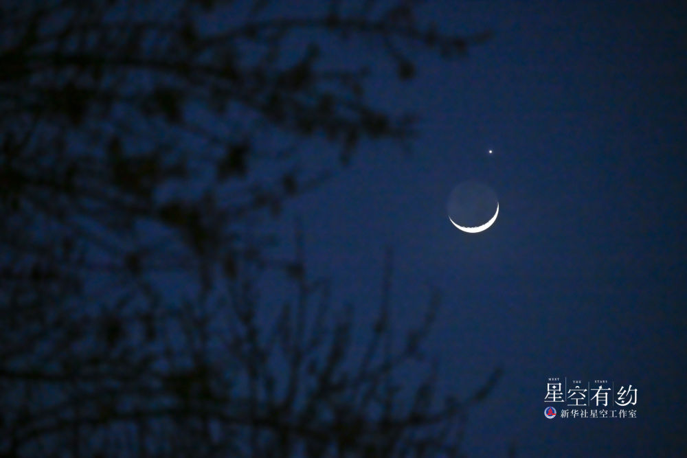 这是2023年3月24日在北京拍摄的月掩金星天象。新华社记者李鑫 摄