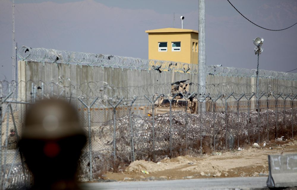 2014年2月13日,一辆美军的军用车辆在喀布尔以北的巴格拉姆监狱内巡逻。新华社发(艾哈迈德·马苏德摄)